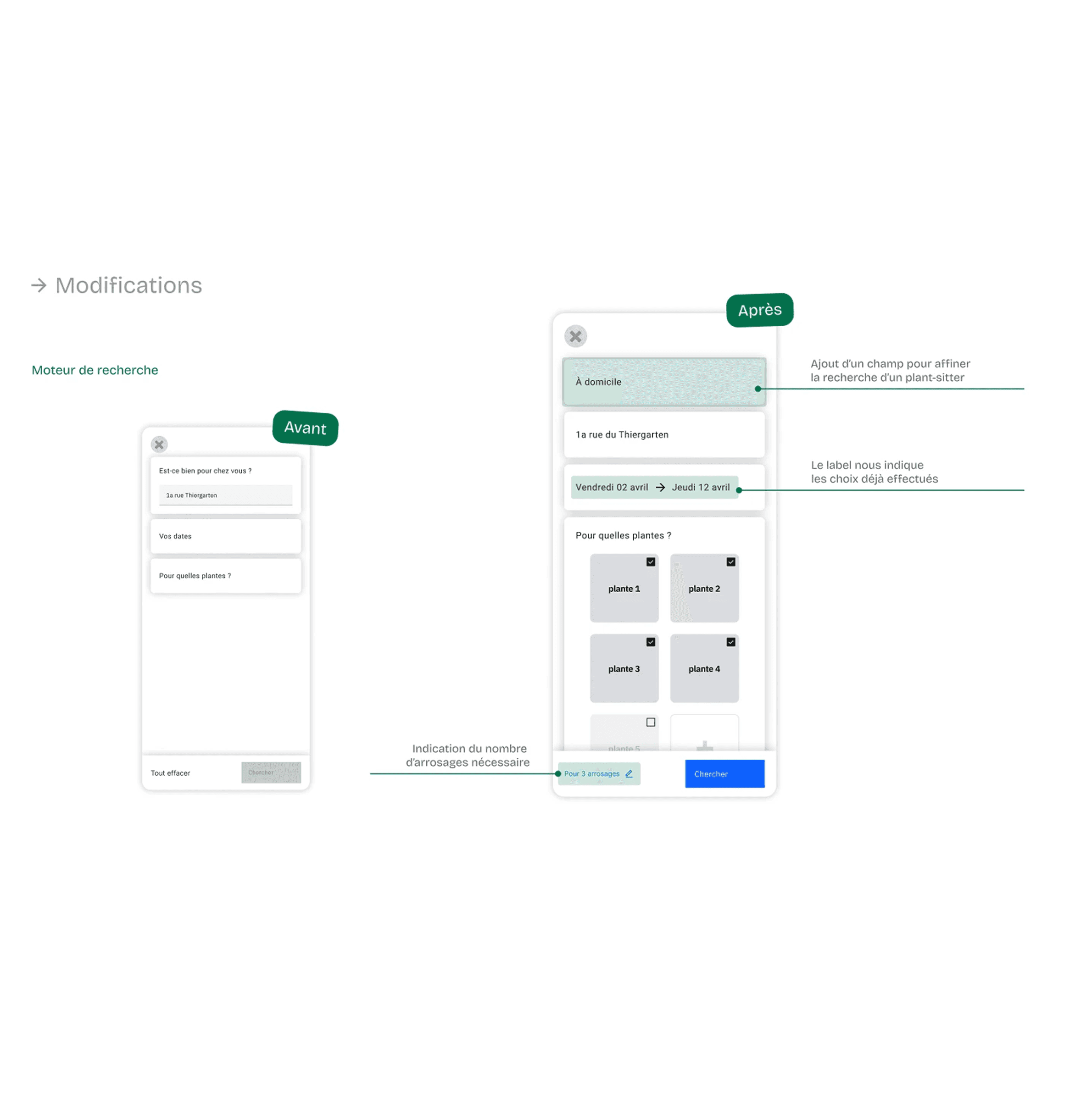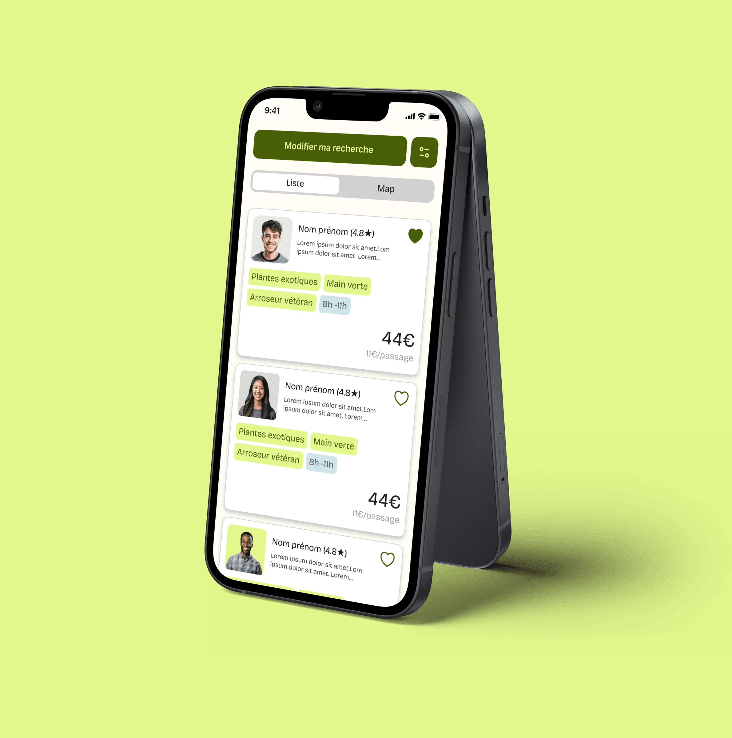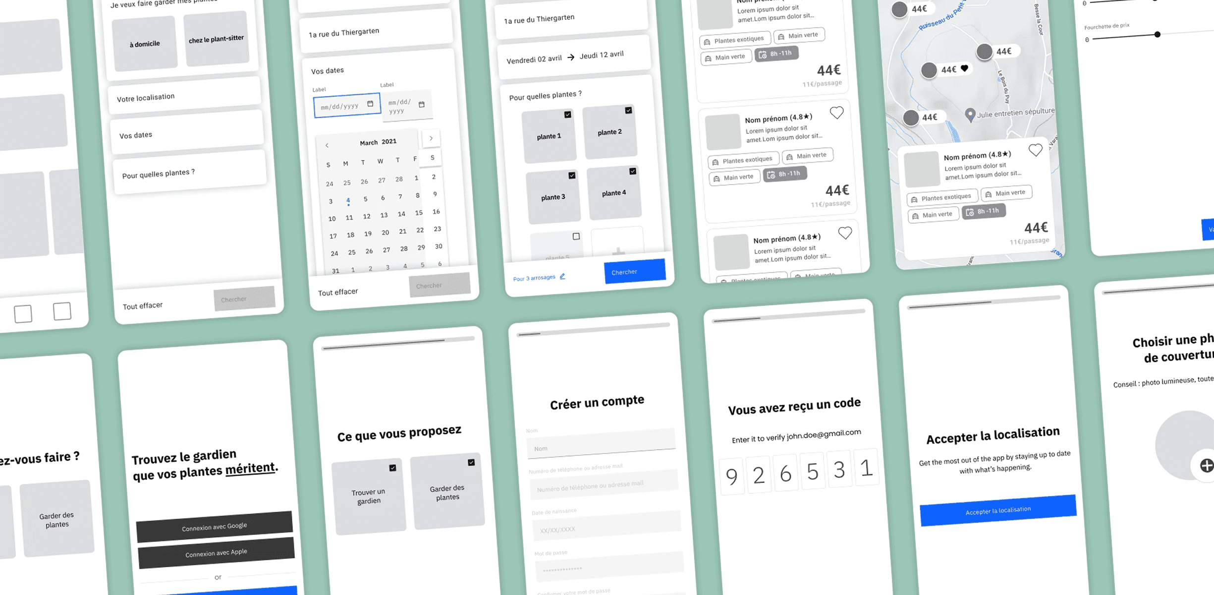 Conception UX/UI de CLEAF, une application dédiée au plant sitting. Création d'une interface conviviale et élégante qui facilite la mise en relation entre les propriétaires de plantes et les plant sitters, tout en offrant une expérience utilisateur agréable et intuitive.